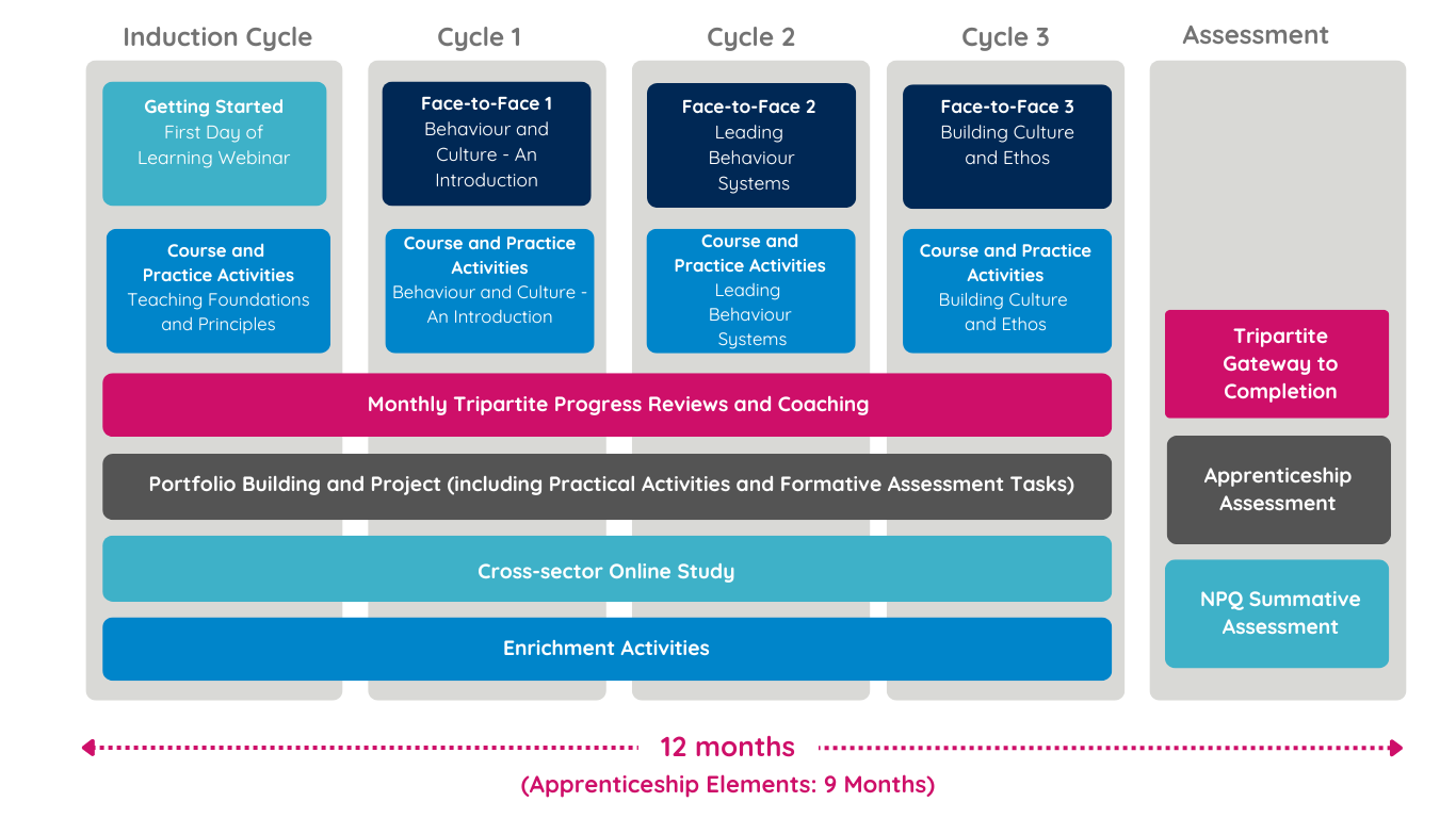 Below is the programme structure for the Leader Apprenticeship with NPQLBC: