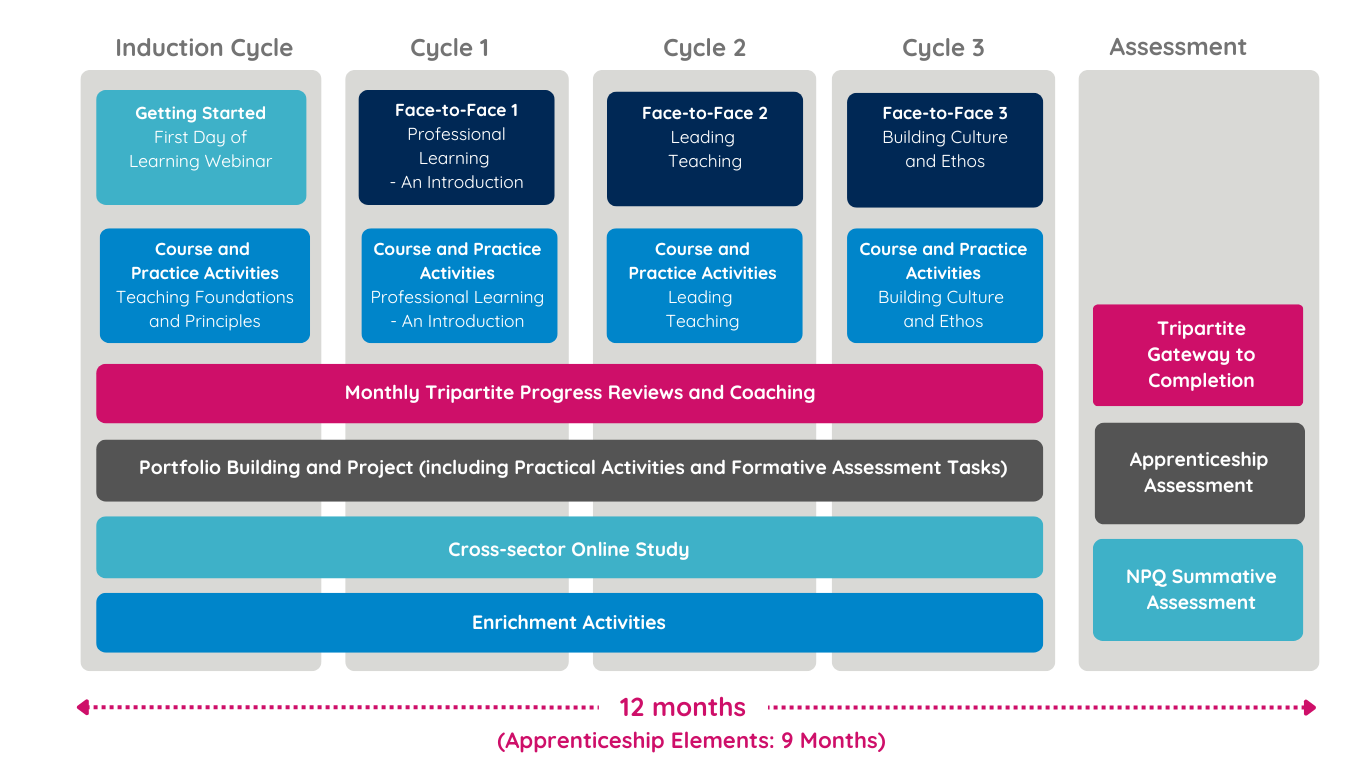 Below is the programme structure for the Leader Apprenticeship with NPQLT: