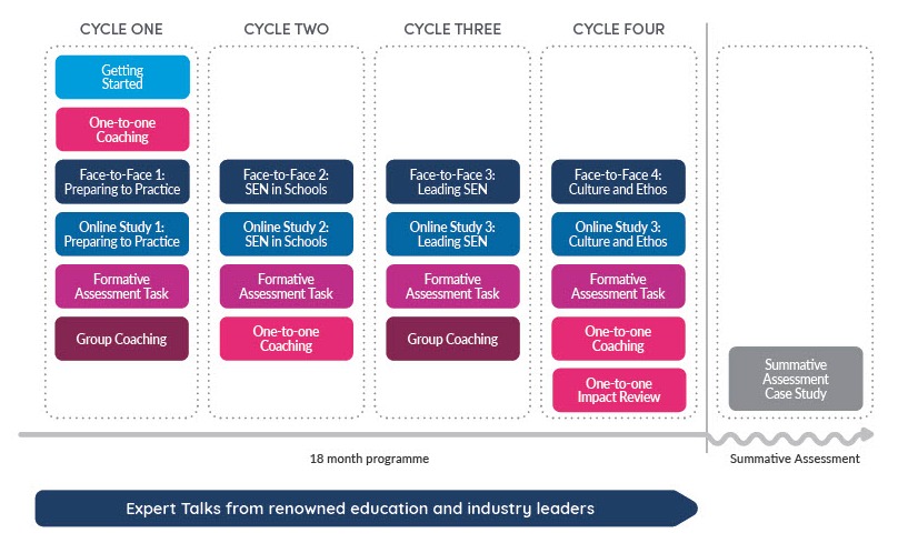 NPQ for SENCOs makes use of a blended delivery model consisting of face-to-face events, online study, webinars and coaching