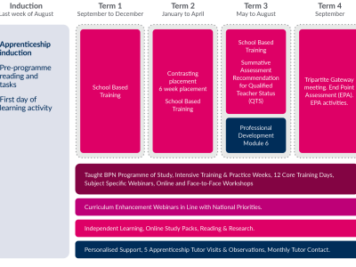 Both programmes are school-centred in that the majority of your training will occur in school as you learn on the job. However, there are key differences when it comes to funding and salary. You can compare the two programmes by looking at the respective programme structures below.