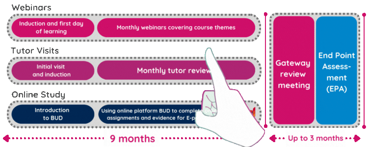 - Three-monthly tripartite reviews – joint meetings between you, your employer and your Tutor-Coach to review progress, set goals and ensure alignment with your role