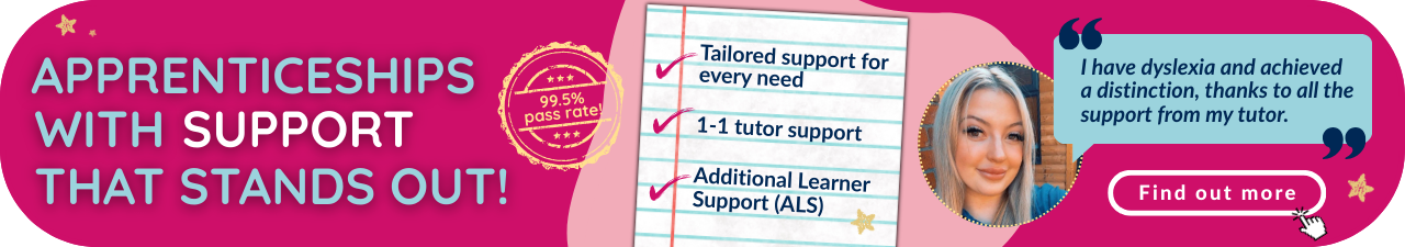 - There is a high level of support from your Apprenticeship Tutor with monthly visits and online webinars