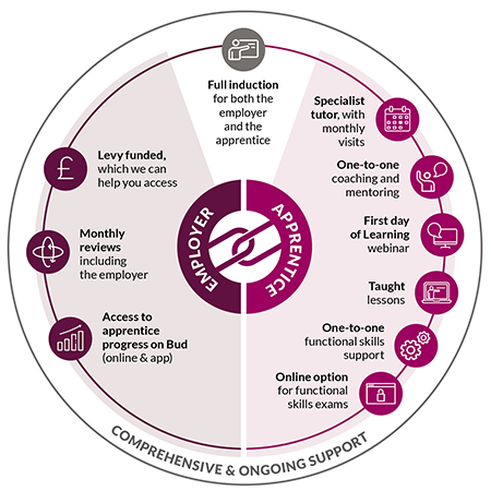 Delivery will also be through webinars, online courses and face to face training days with the dedicated apprenticeship tutor (dependant on current legislation).